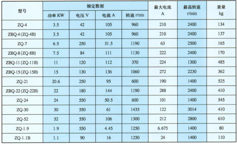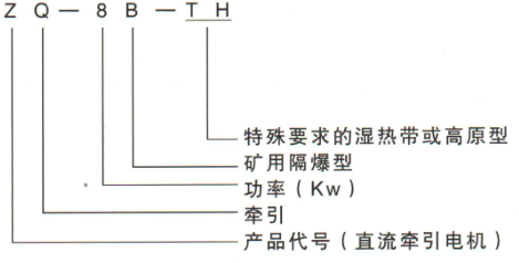 型号含義;Z-直流 Q-牽引 B-礦用(yòng)隔爆型 H-特殊要求的濕熱帶或高原型